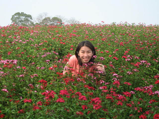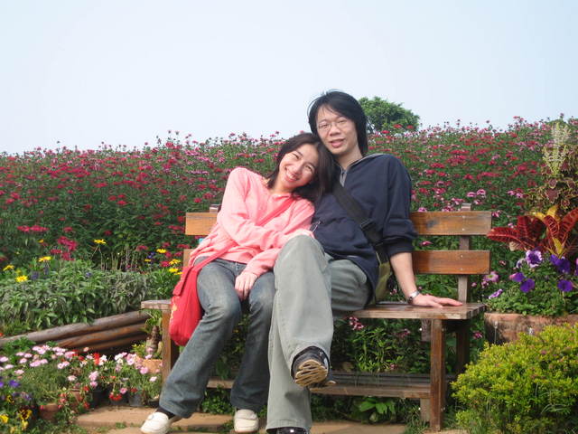 一道道鮮豔美麗各色花卉構畫出彩虹