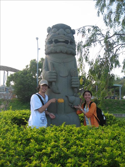 等候的時間 跑去跟外面的風獅爺照相