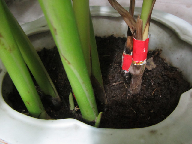 挖~~盆栽裡有六株正在成長的蓮蕉