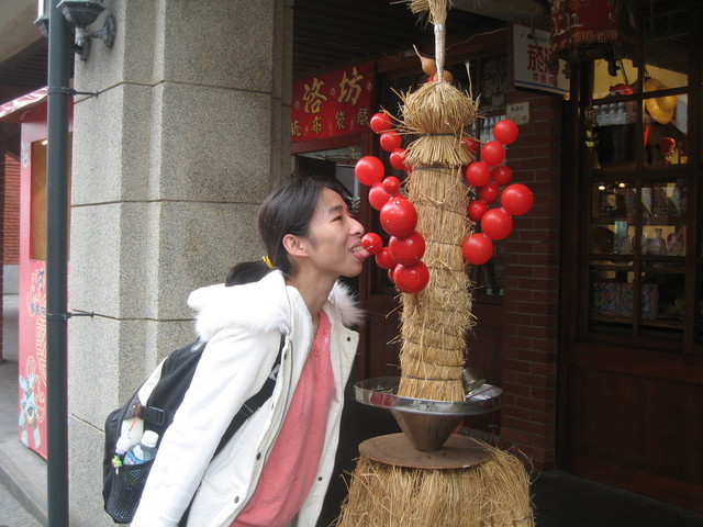 大大的糖葫蘆真想咬一口 但嘴巴不夠大